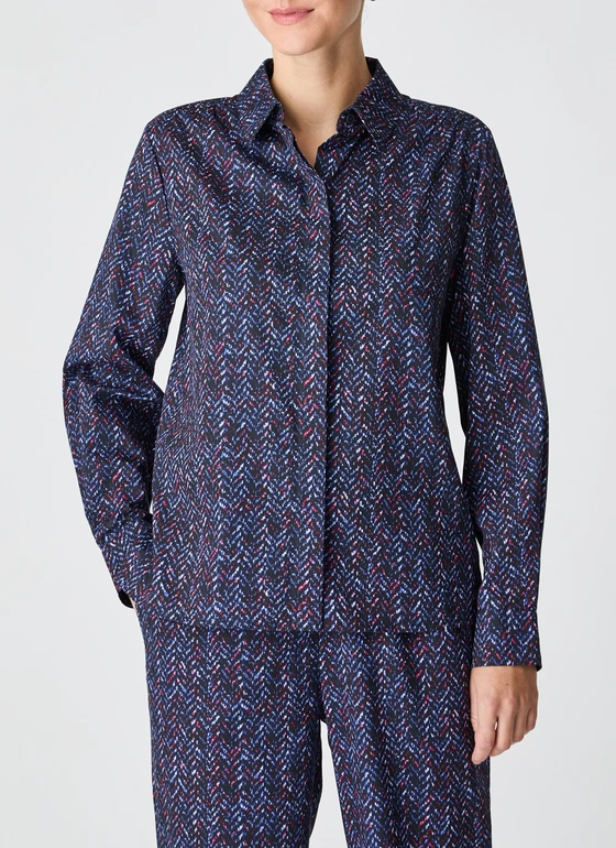 Luftig, weich und stilvoll zeigt sich diese Damenbluse aus einer hochwertigen Baumwoll Lyocell Mischung mit fließender Haptik und modernem Allover Muster. Eine feminine Quetschfalte im Rücken und markante Manschetten mit feiner Finchen Stickerei setzen besondere Akzente. Die Bluse ist atmungsaktiv, angenehm zu tragen und vielseitig kombinierbar – ein stilvoller Begleiter für jeden Tag. Ein passender Stylingtipp ist die Kombination im Set mit unserer Hose (Art. 127201) für einen harmonisch abgestimmten Look.
