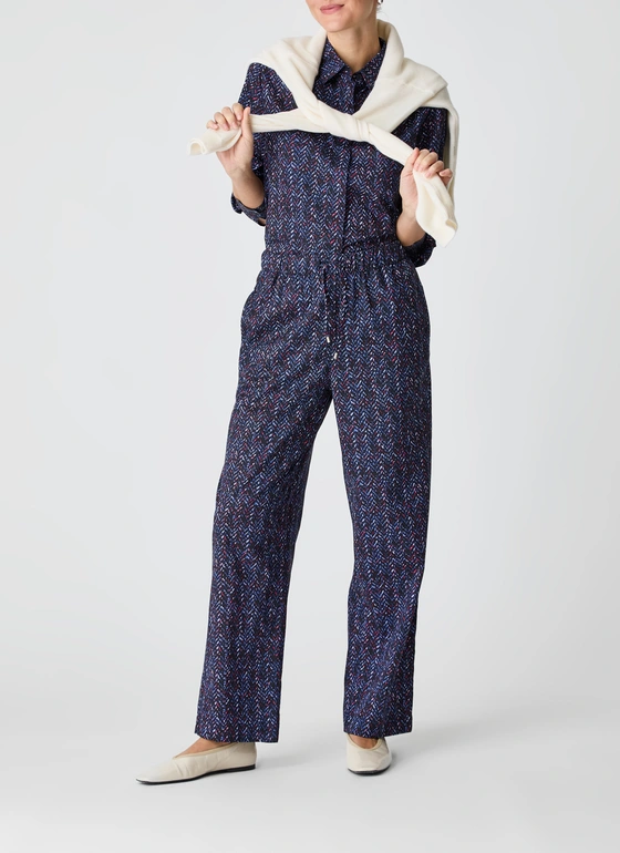 Luftig, weich und stilvoll – diese Hose aus einer hochwertigen Baumwoll-Lyocell-Mischung begeistert mit fließender Haptik und modernem All-over-Muster. Der elastische Komfortbund mit integriertem Bindegürtel ermöglicht eine individuelle Passform. Zwei seitliche Eingriffstaschen runden das funktionale Design ab. Die atmungsaktive, formstabile Materialmischung liegt angenehm weich auf der Haut und ist besonders pflegeleicht. Styling-Tipp: Perfekt im Set mit unserer Bluse (Art. 127001).