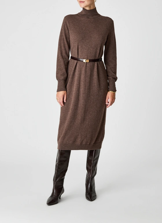 Dieses lange Strickkleid aus 100 % extrafeiner Merinowolle vereint eleganten Stil mit hohem Tragekomfort. Der Regular Fit sorgt für eine feminine, klare Silhouette, während der Stehkragen dem Design eine moderne Note verleiht. Markante Rippstrukturen an Kragen und Saum setzen dezente, aber wirkungsvolle Akzente. Die weiche, atmungsaktive Merinowolle fühlt sich angenehm auf der Haut an, ist temperaturausgleichend und geruchsneutral und sorgt so den ganzen Tag für ein frisches, bequemes Tragegefühl. Ob mit Stiefeln kombiniert für einen eleganten Look, lässig im Alltag oder Zuhause getragen, dieses Modell überzeugt durch Vielseitigkeit und Stil.