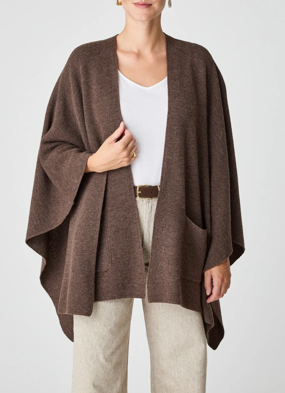 Diese Strickjacke in moderner Cape-Optik besticht durch ihren legeren Oversized Fit und den edlen Perlfang-Strick aus 100 % extrafeiner Merinowolle. Die strukturierte Oberfläche verleiht dem Modell eine besondere Tiefe und einen stilvollen Look. Die hochwertige Merinowolle ist angenehm weich, temperaturausgleichend und atmungsaktiv, wodurch sie ideal für vielseitige Einsätze geeignet ist. Zwei aufgesetzte Taschen auf der Vorderseite setzen praktische und optische Akzente. Die fließende Form unterstreicht den entspannten Charakter und sorgt für maximalen Tragekomfort.