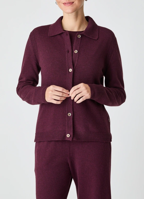 Mit ihrer weichen und feinen Struktur aus 100% extrafeiner Merinowolle umschmeichelt diese Strickjacke die Haut und überzeugt durch einen entspannten Regular Fit. Sie ist atmungsaktiv, temperaturausgleichend und geruchsneutral – ideal für jeden Tag. Der stilvolle Umlegekragen mit markanter Rippstruktur und fein gearbeitete Details wie handgekettelte Nähte betonen die hochwertige Verarbeitung.