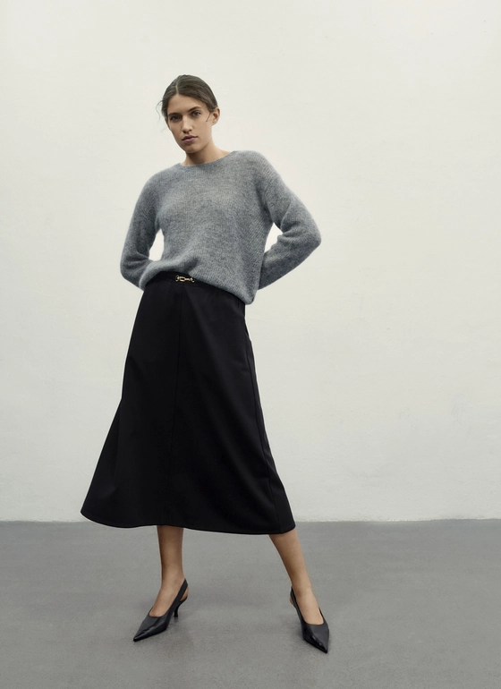 Der Rock zeigt sich in moderner Linienführung mit klarer Silhouette und stilvollen Details wie seitlichen Eingrifftaschen und schmalen Leistentaschen auf der Rückseite. Der Modern Fit verleiht eine feminine Form und passt sich vielseitigen Outfits an. Gefertigt aus einer hochwertigen Viskosemischung überzeugt das Modell durch angenehmen Tragekomfort und einen fließenden Fall. Der elastische Gummibund sorgt zusätzlich für eine bequeme Passform. Ein elegantes Kleidungsstück für die anspruchsvolle Garderobe in der kühleren Jahreszeit.