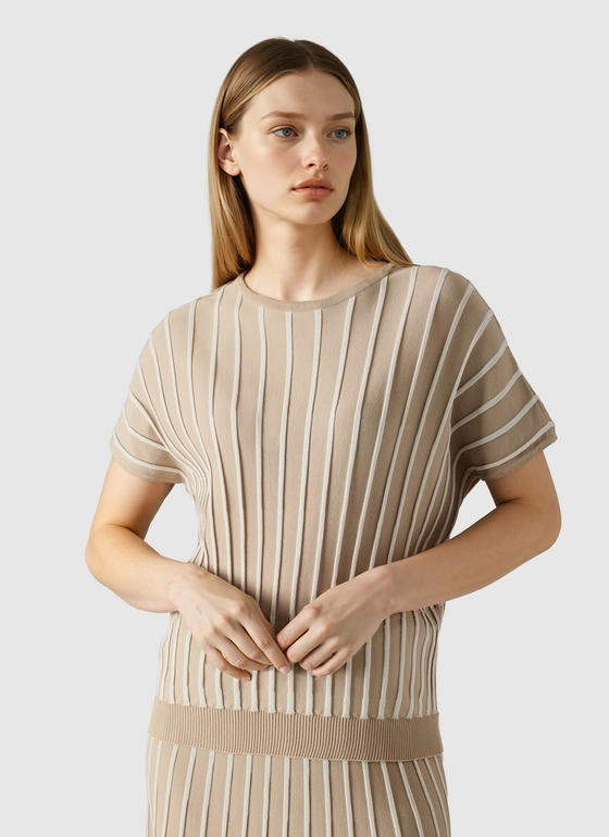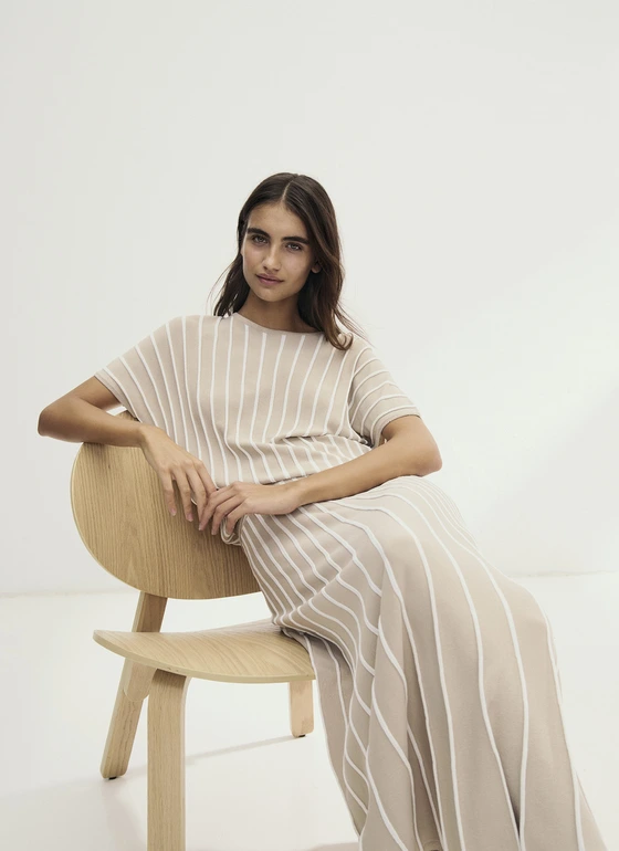 Mit einer stilvollen Leichtigkeit, die sofort Aufmerksamkeit gewinnt, präsentiert sich dieser Pullunder als moderner Akzent jeder Garderobe. Die Viskosemischung sorgt für eine weich fließende, angenehm glatte Haptik und ein komfortables Tragegefühl. Überschnittene Schultern und der Loose Fit verleihen entspannte Eleganz, während senkrechte Rippen in Kontrastfarbe dem Design Tiefe und grafische Spannung geben. Ob solo getragen oder zusammen mit dem passenden Rock (Art. 397501) entsteht ein harmonischer, zeitgemäß femininer Look.