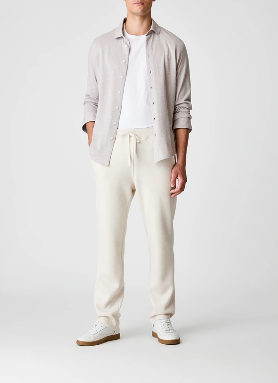 Diese Herrenhose vereint eine entspannte Silhouette mit hochwertigem Material und präziser Verarbeitung. Der elastische Bund mit Bindebändern sorgt für einen bequemen Sitz und eine lässige Optik. Seitliche Eingriffstaschen und eine aufgesetzte Tasche auf der Rückseite ergänzen das zurückhaltende Design mit funktionalen Details. Gefertigt aus 100% Merinowolle überzeugt die Hose durch ihre weiche, temperaturregulierende Qualität und eine glatte, angenehme Haptik. Die Verarbeitung ist formstabil und langlebig, ideal für entspannte Outfits mit Anspruch an Stil und Komfort.